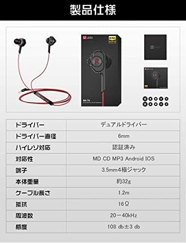 同製品はデュアルドライバー搭載のイヤホンで、ハイレゾ対応なことが特徴です。