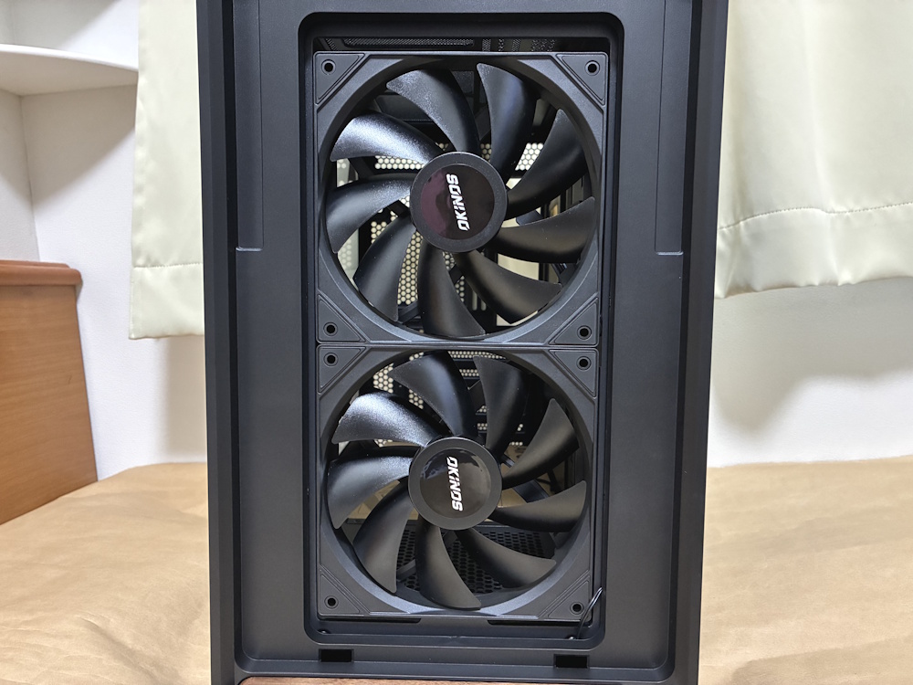 付属品の箱を取り外すとリバースファン2個が設置されています。
