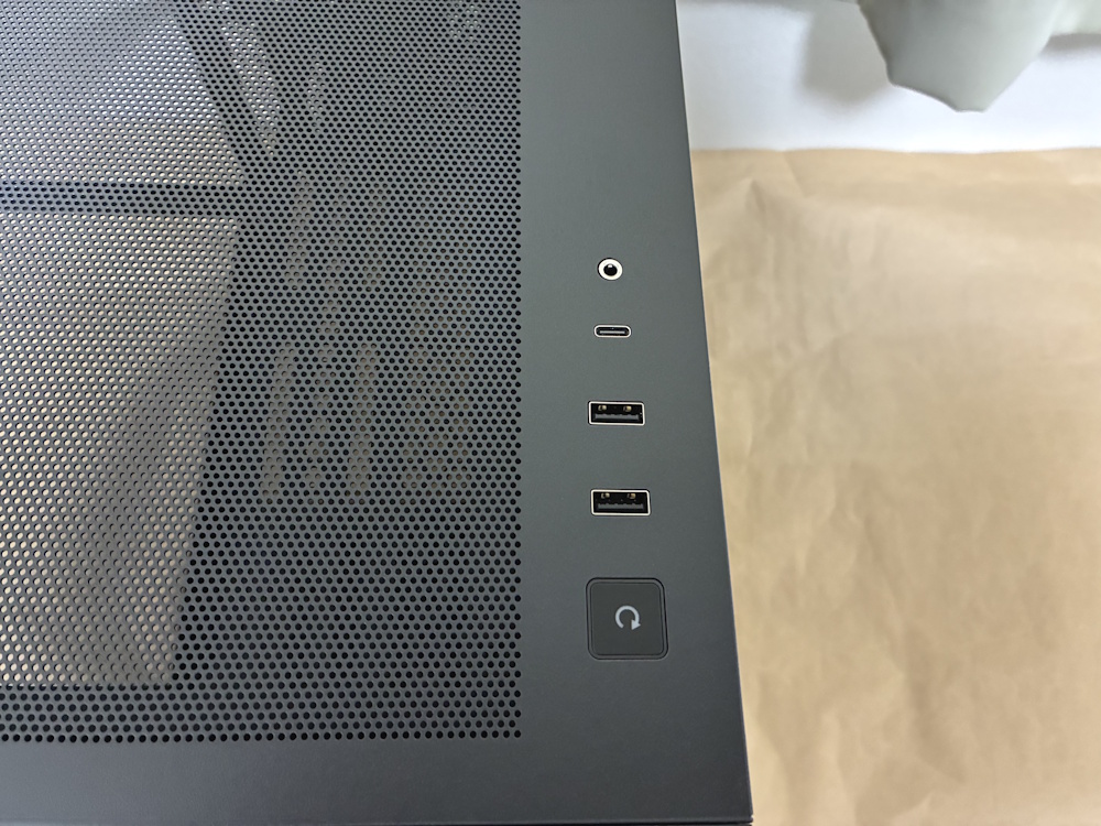 手前からリセットボタン、USB3.0 x2、USB Type-C(10Gbps)、イヤホンマイクのコンボジャックです。