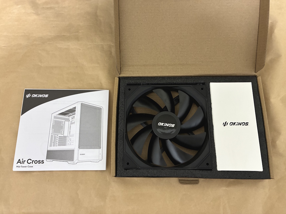 付属品の箱を開封すると背面ファンや取扱説明書が収まっています。