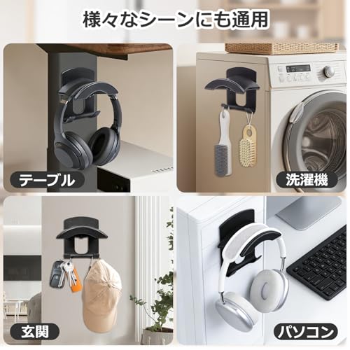 同製品はマグネット固定式のヘッドホン置きで、PCケースなどに取り付けられること、ケーブル用のフックがあることが特徴です。
