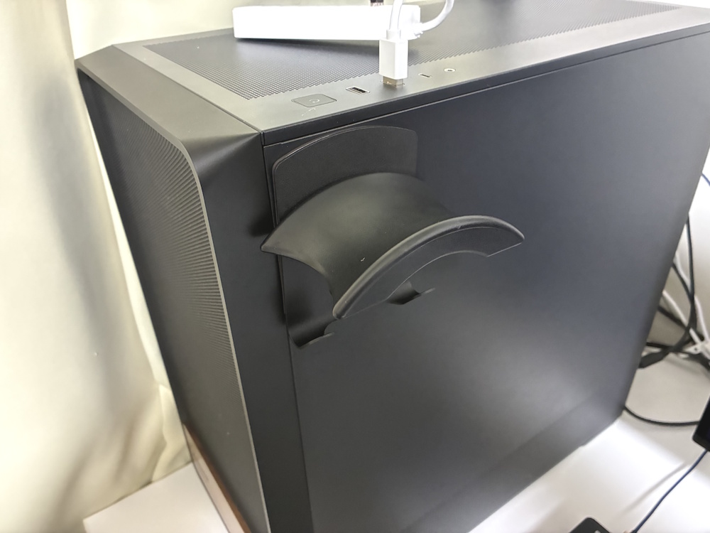 今までサイドパネルに穴が無い鉄板タイプのPCケース(Okinos Air Cross)を使っていて全く問題ありませんでしたが、COOLER MASTER QUBE 540に買い替えたところ、ずり落ちるようになりました。