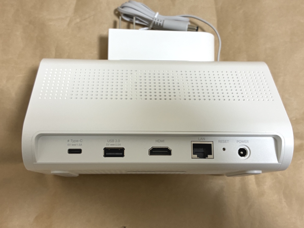 左からUSB Type-C、USB 2.0 Type-A、HDMI、LANポート、リセットボタン、電源端子です。