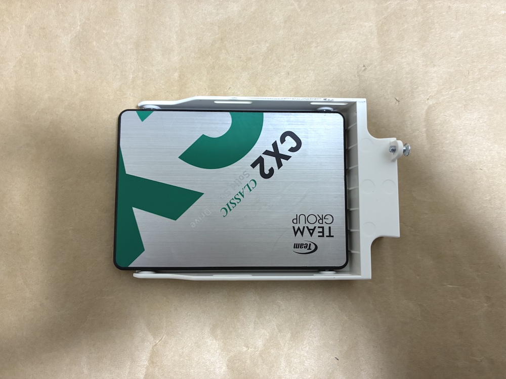 1.本体側面のカバーを外す>2.5インチHDD・SSDを取り付け>カバーを元に戻します。