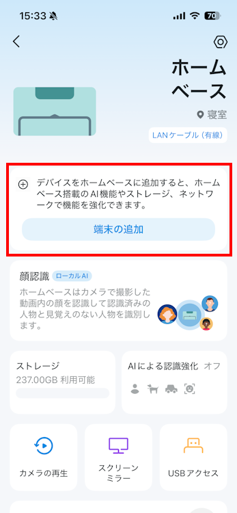 19.ホームベースにカメラ等のデバイスを追加する場合はそのまま設定を続けてもOKです。