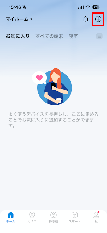 7.右上のプラスマークをタップ>デバイスを追加をタップ。