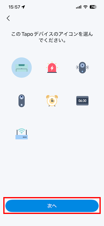 16.デバイスのアイコンを選ぶ>次へをタップ。