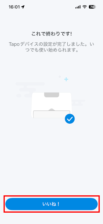 18.これで終わりです!と表示されたら初期設定は完了です。